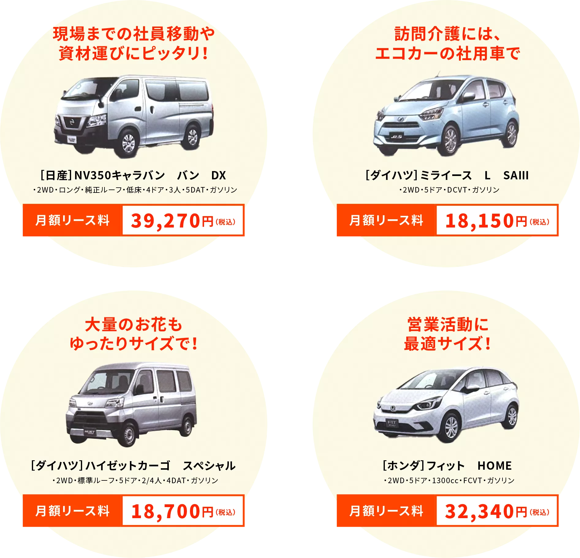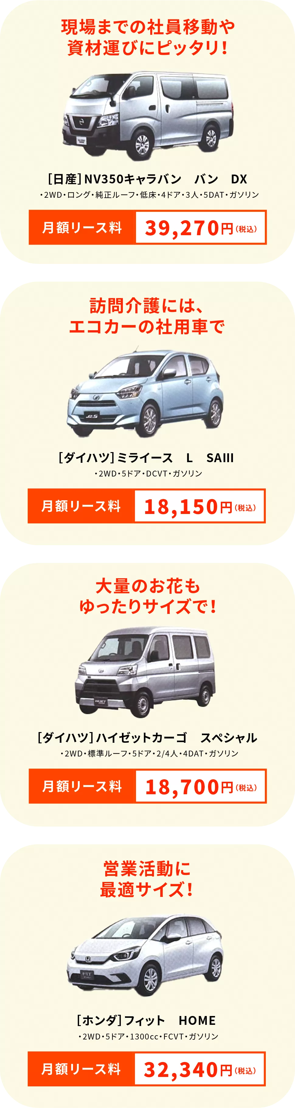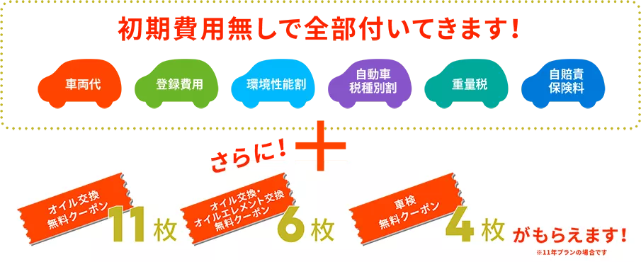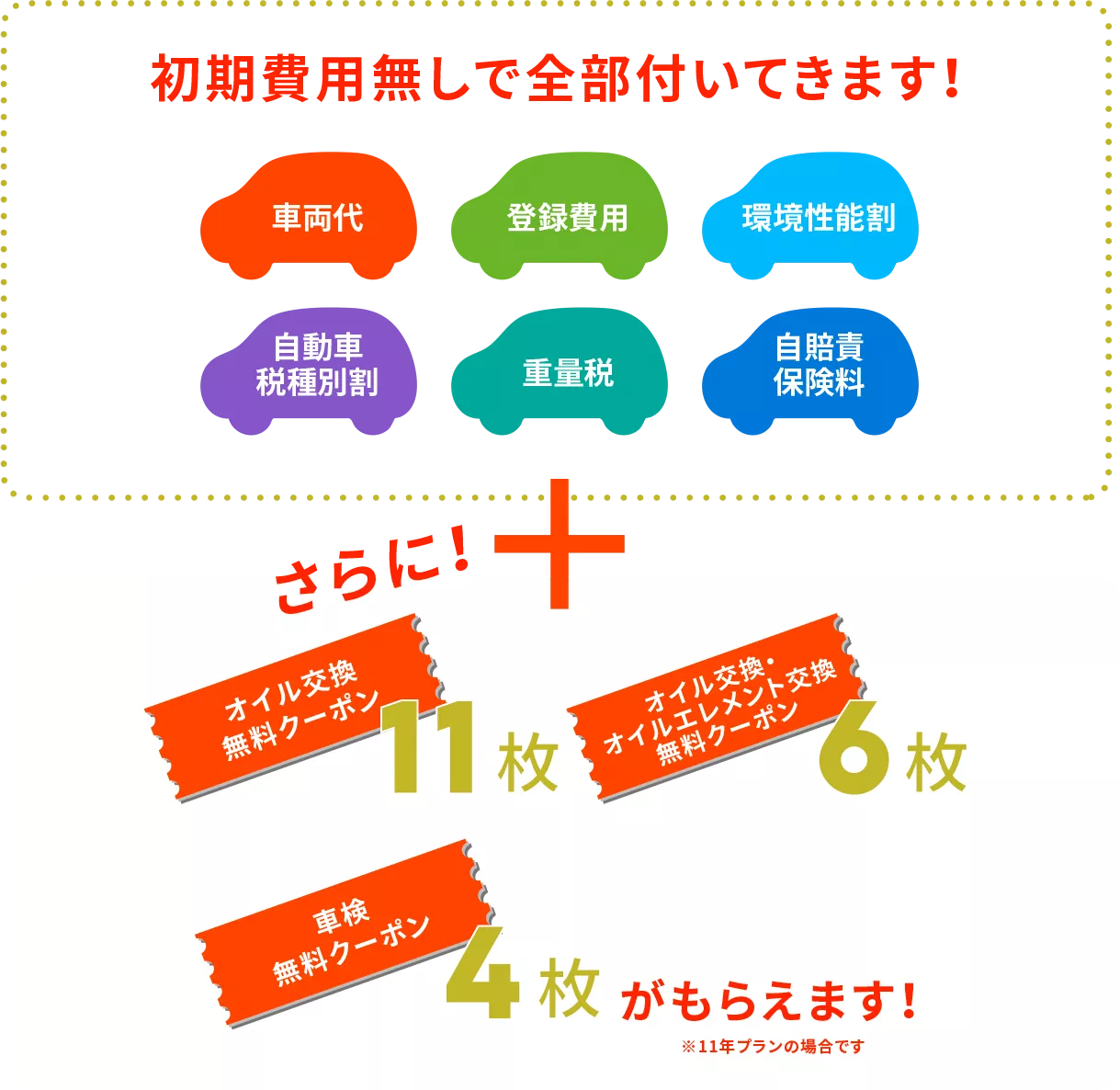 ・車両代・登録費用・重量税(初回のみ)・環境性能割・自賠責保険料(初回のみ)・自動車税種別割(リース期間)・オプション(純正マット・純正バイザー含む)